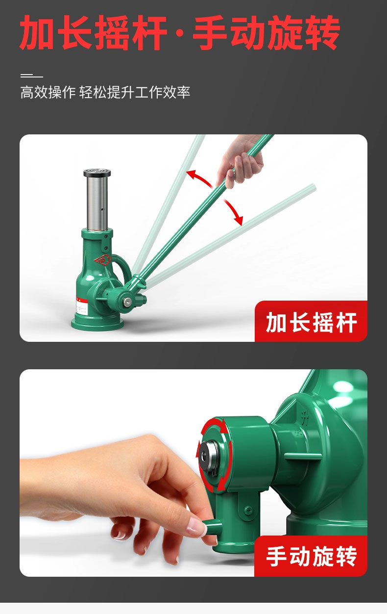 螺旋千斤頂又稱(chēng)機械式千斤頂,是由人力通過(guò)螺旋副傳動(dòng),螺桿或螺母套筒作為頂舉件。普通螺旋千斤頂靠螺紋自鎖作用支持重物,構造簡(jiǎn)單,但傳動(dòng)效率低,返程慢。自降螺旋千斤頂的螺紋無(wú)自鎖作用,裝有制動(dòng)器。放松制動(dòng)器,重物即可自行快速下降,縮短返程時(shí)間,但這種千斤頂構造較復雜。螺旋千斤頂能長(cháng)期支持重物,最大起重量已達 100噸,應用較廣。下部裝上水平螺桿后,還能使重物作小距離橫移。型號 起重量 起重高度 最低高度 手柄操作力 自重 (tons) 不小于≮(mm) 不大于≯(mm) 不大于≯ N kg QL3.2 3.2 110 200 100 7 QL5 5 130 250 160 8 QL8 8 140 260 200 9 QL10 10 150 280 250 10 QL16 16 180 320 400 16 QL20 20 180 325 500 17 QL25 25 130 275 600 20 QL32 32 200 395 650 30 QL50 50 250 452 800 52 QL100 100 200 452 600 78 QL200 200 200 472 600 100 QL320 320 200 540 600 150 QL380 380 200 600 600 180